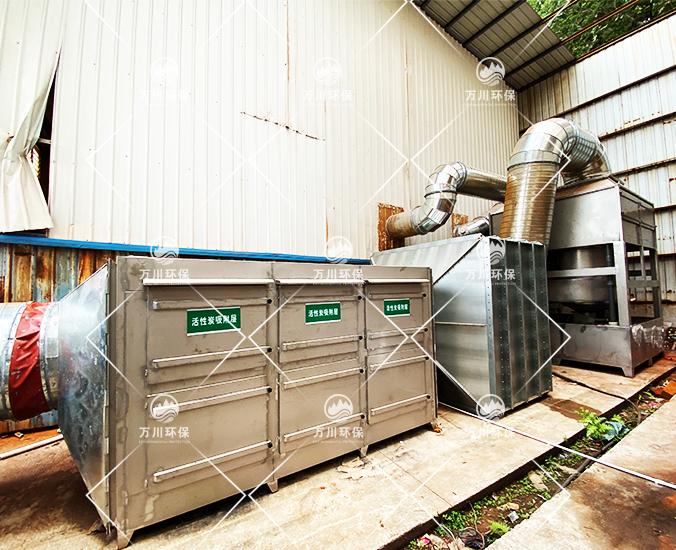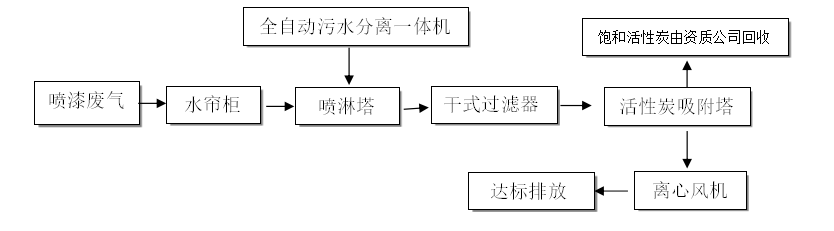 漆廢氣采取噴淋塔+光解催化+活性炭吸附塔的方法處理;